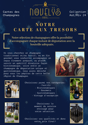 Nos cuvées sont toutes disponibles en quantité limitées. En effet, nous travaillons étroitement en direct avec nos producteurs afin de garantir des cuvées spécialement réservées pour Novelÿs Savall. Elles ne sont plus disponibles ni sur internet ni chez les producteurs. Nous obtenons des années de base plus anciennes que celles en circulation, des séries limitées, ou des exclusivités afin de ravir notre clientèle sur mesure. Consultez nos cartes aux trésors!